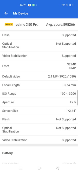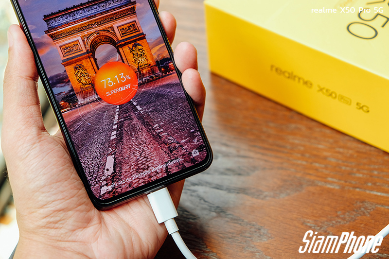 realme X50 Pro 5G มาพร้อมกับแบตเตอรี่ความจุ 4200mAh รองรับ 65W SuperDart ซึ่งได้รับการเคลมจากทาง realme ว่าสามารถชาร์จเต็ม 100% โดยใช้เวลาเพียง 35 นาทีเท่านั้น และเพียง 20 นาที ก็ชาร์จได้เกือบ 60% ด้วย ถือว่าแรงทั้งชิป และเร็วทั้งการชาร์จแบตเตอรี่ งานนี้เขาจัดมาเต็มจริงๆ